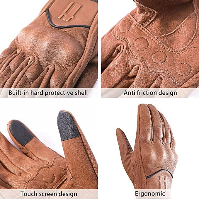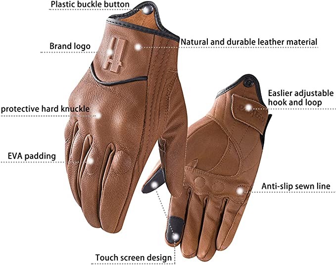 Harssidanzar Men's Motorcycle Gloves, Leather Touch Screen Cycling Driving Gloves GM028US, Light Brown, Size L