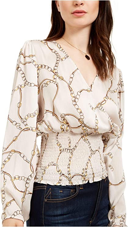 Leyden Gathered Bias Shirt - Tan Chain Large