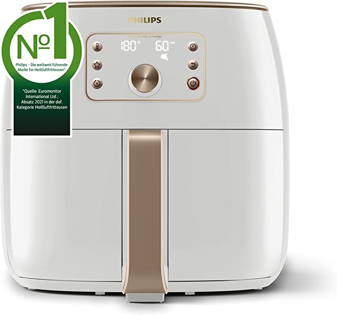 Philips Premium Airfryer XXL-Oil Free Air Fryer, Smart Induction Technology, 2225 W, Skim Technology, Fast Air Technology, White, HD9870/20