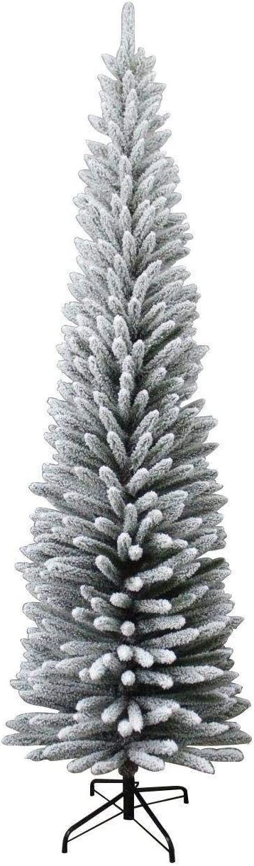 SHATCHI 4Ft-8Ft Artificial Slim Christmas Pencil Tree Holiday Home Decorations with Pointed Tips and Metal Stand Black/White/Frosty Green, Snow Flock, 6ft