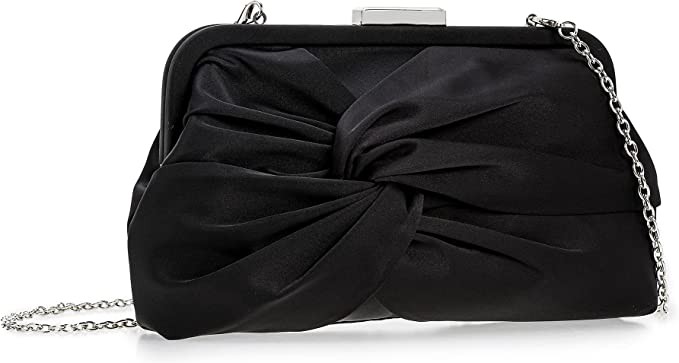 iXebella Women's Evening Wallet Fashion Soft Pleated Knot Party Clutch Satin Frame Formal Tote for Wedding/Prom/Cocktail Party