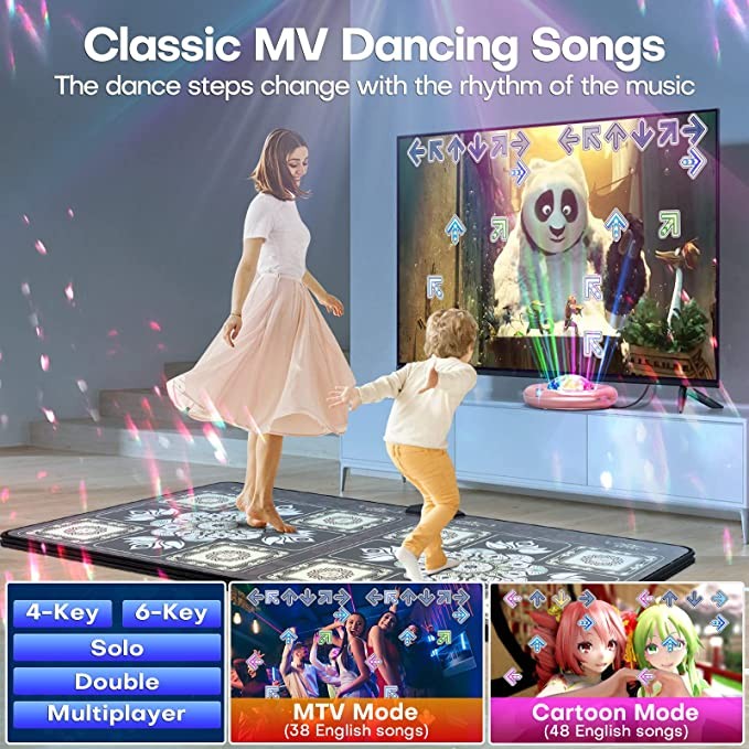 • 【HIGH QUALITY SAFETY & EASY INSTALLATION】Device installation just use HDMI to connect the host and TV, very convenient. PU+EVA high quality non-polluting and harmless material is harmless to human body. The anti-skid design of rubber particles on the bottom of the dancing mat makes it more secure. If you have any questions about our dance mats, please feel free to contact us via Amazon message and we will reply immediately.