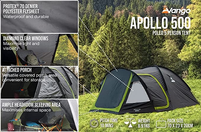 Vango Apollo 500 Dome Tent - 5 Person Tent